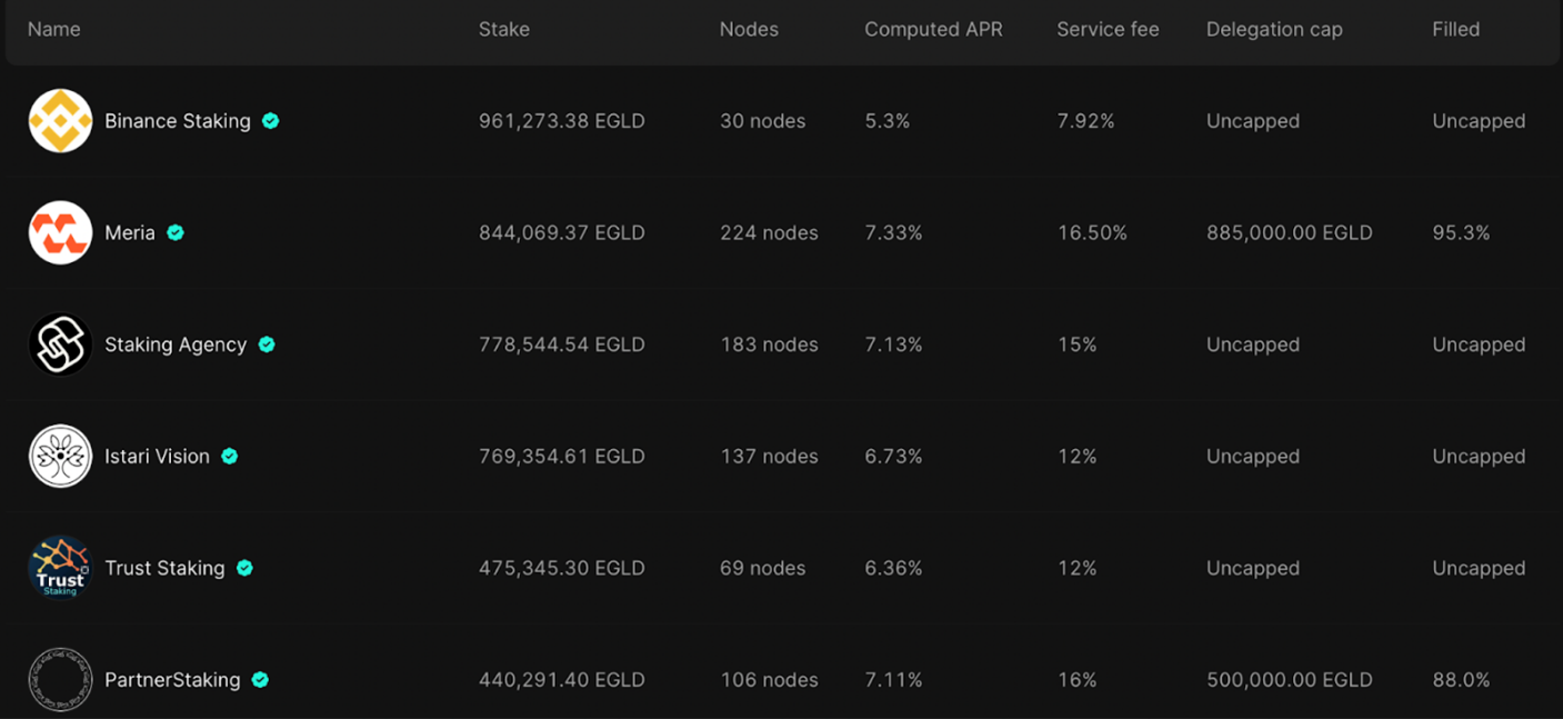For their pivotal role, validators receive dual rewards: from the protocol itself and transaction fees. However, the path to becoming a validator involves certain prerequisites. As a security measure and a show of commitment, potential validators need to stake eGLD tokens as collateral. As of the latest standards, this stake is fixed at 2500 eGLD. This staking mechanism not only maintains the integrity of their roles but also acts as a deterrent against potential malfeasance.