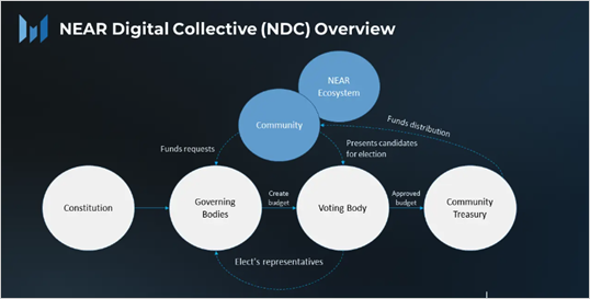 - The NEAR Foundation, with the inception of the NEAR Digital Collective (NDC) and a pivot to community DAOs, is pioneering a transition to a more democratized and decentralized framework compared to the conventional Board-based system. Launched in Q3 2022, the NDC represents a concerted effort to decentralize decision-making within the NEAR network, emphasizing transparency through defined treasury management and embracing decentralized governance with on-chain voting. Furthermore, the NDC aspires to advance validator decentralization and stimulate the development of the core protocol and infrastructure.